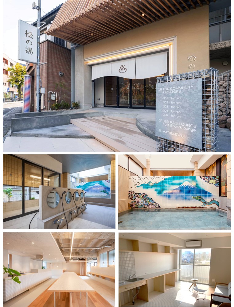 1985年に建設された建物を全面改修し、1階に銭湯、2階にカフェ&ワークラウンジ、3〜6階に店舗・事務所、中⻑期滞在用レジデンスを設け、地域市民以外の観光やビジネス目的での利用も想定した多目的型の一棟不動産として再生に取り組んで参りました。